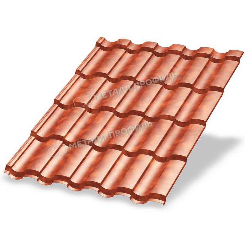 Металлочерепица с профилем Монтекристо-XL толщиной 0,5 мм и покрытием CLOUDY® Anticato в терракотовом оттенке сочетает в себе эстетику классической керамической черепицы с прочностью металла. Это идеальное решение для кровли, которое обеспечивает долговечность, защиту от атмосферных воздействий и визуальную привлекательность, имитирующую состаренную терракоту.