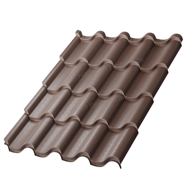 Металлочерепица с профилем Монтерроса-SL от Металл-Профиль представляет собой надежный кровельный материал толщиной 0,5 мм. Она покрыта инновационным слоем VikingMP® E в насыщенном темно-коричневом оттенке RR 32, что обеспечивает долговечность и эстетичный вид. Этот продукт сочетает в себе прочность металла с современными технологиями защиты, идеально подходя для частных домов и коммерческих объектов.