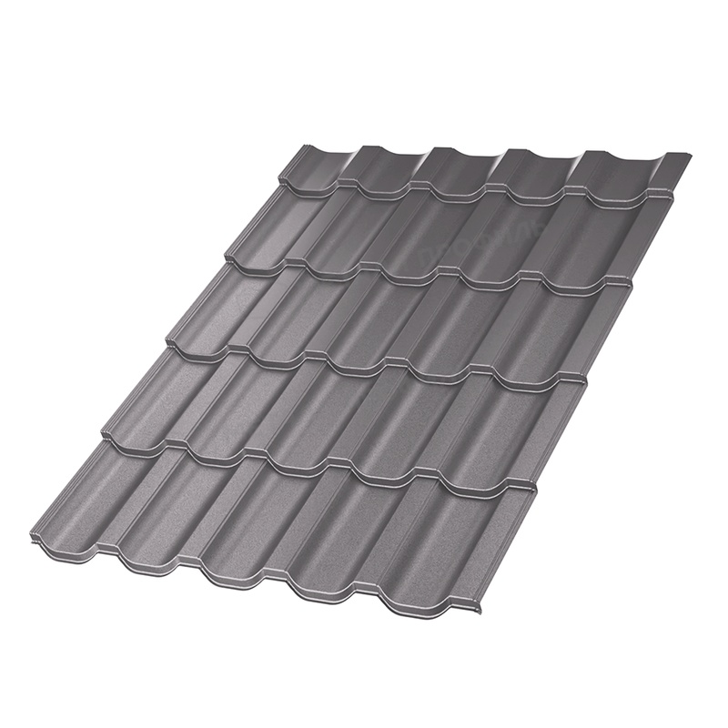 Металлочерепица Трамонтана-SL 0,5 VALORI в сером цвете от Металл-Профиль — это надежный кровельный материал с толщиной стали 0,5 мм. Она сочетает эстетику классической черепицы с прочностью металла, обеспечивая долговечность и защиту от погодных условий. Покрытие VALORI добавляет матовую текстуру и стойкость к выцветанию, идеально подходя для современных крыш.