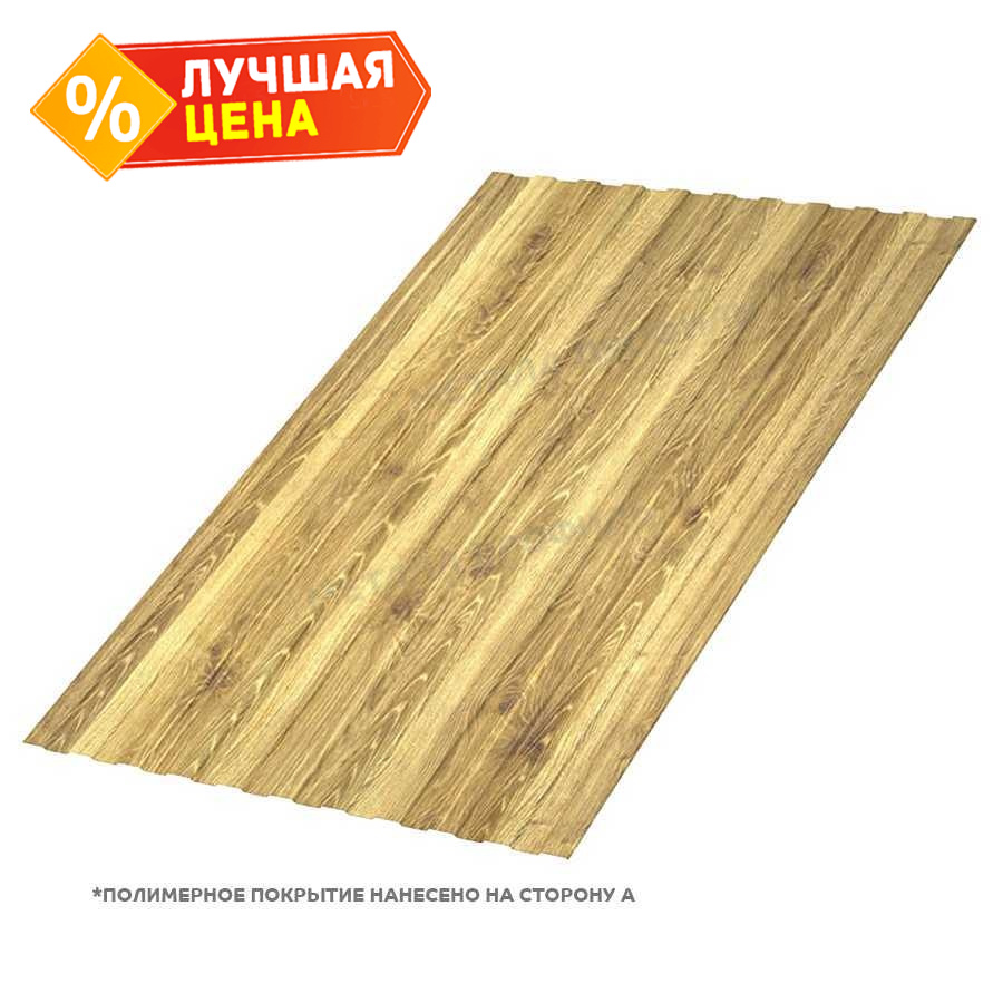 Это инновационное решение имитирует текстуру натурального дерева, создавая визуальный эффект золотого дуба. Оно наносится на одну сторону листа, что позволяет экономить на материалах без потери качества. Покрытие устойчиво к выцветанию, царапинам и атмосферным воздействиям, благодаря многослойной структуре с полимерными добавками. Толщина слоя обеспечивает защиту от коррозии на протяжении многих лет, делая материал подходящим для регионов с переменным климатом.